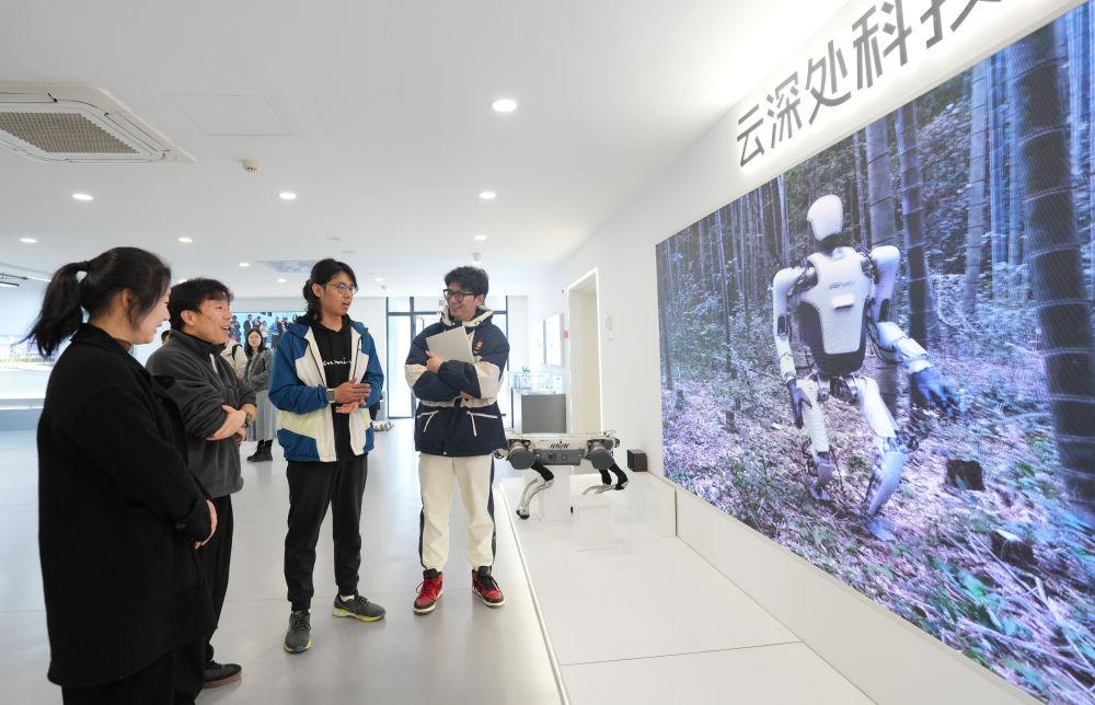 2月28日,杭州云深处科技有限公司技术支持团队的工程师为客户介绍一款人形机器人的应用。新华社记者 翁忻旸 摄