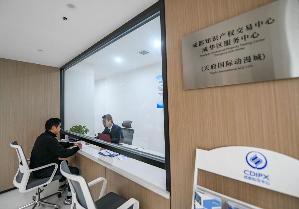 2月27日,民营企业工作人员在成都知识产权交易中心成华区服务中心咨询相关政策。新华社记者 王曦 摄