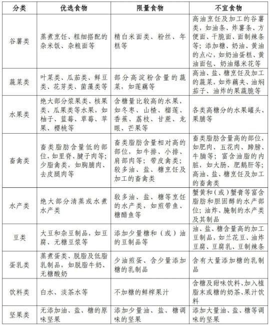 各类食物选择举例