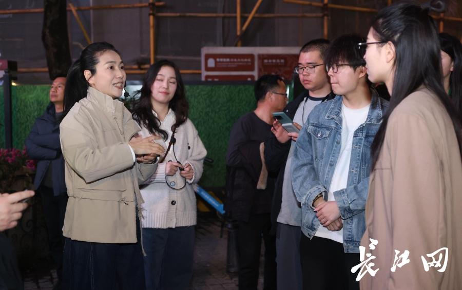 武汉市江岸区融媒体中心工作人员祁熠为探访团讲解汉口历史风貌区。王筝 摄
