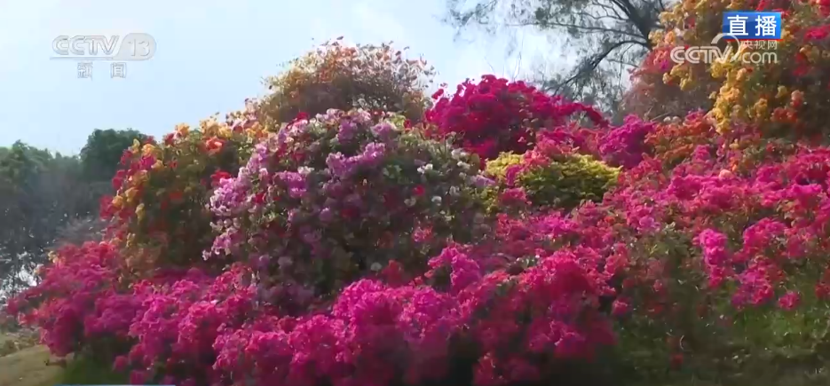 央视网消息:春日融融,岭南大地到处花团锦簇。眼下,占地23公顷的广州云萝植物园十几种多年生和乔木花卉正值盛花期,绚烂花海吸引着市民游客前来踏春赏花。
