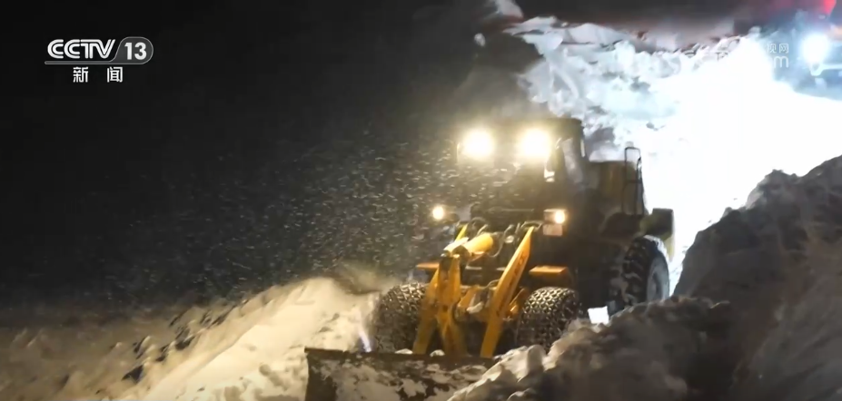 前方的弯道又出现了风吹雪堵路,黑暗中羊群无法前进,唐加力克赶忙叫来了交通部门的清雪车,清理出道路。经过2个多小时的跋涉,奴尔赛力克到达了二台转场服务站,在这儿,他终于喝上了热腾腾的奶茶,还有汤面和馕,羊群和马儿也能在这里吃草料。经过休整,牧民奴尔赛力克第二天就会到达春牧场。
