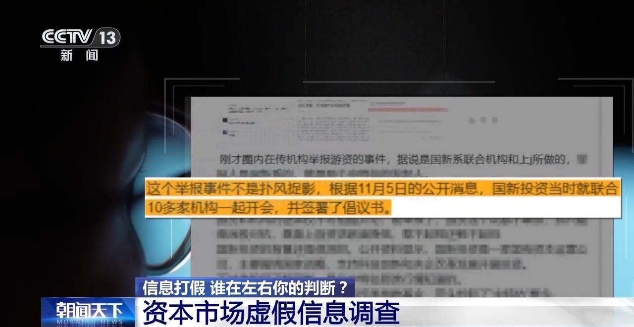近年来,在资本市场,虚假信息如暗流涌动,不仅直接侵害了投资者的知情权,还可能冲击市场的稳定与秩序。这些虚假信息究竟从何而来?是谁在制造这些虚假信息?背后又暗藏着怎样的利益链条?为了揭开真相,总台央视记者兵分多路,深入调查,带您直击资本市场虚假信息背后的重重迷雾。