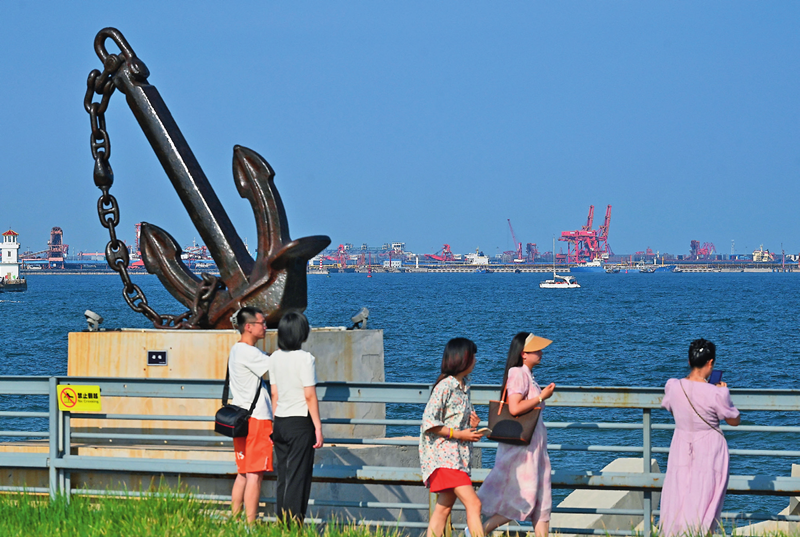 游客在秦皇岛西港花园 游览( 2023 年 8 月 10 日摄) 李铎摄