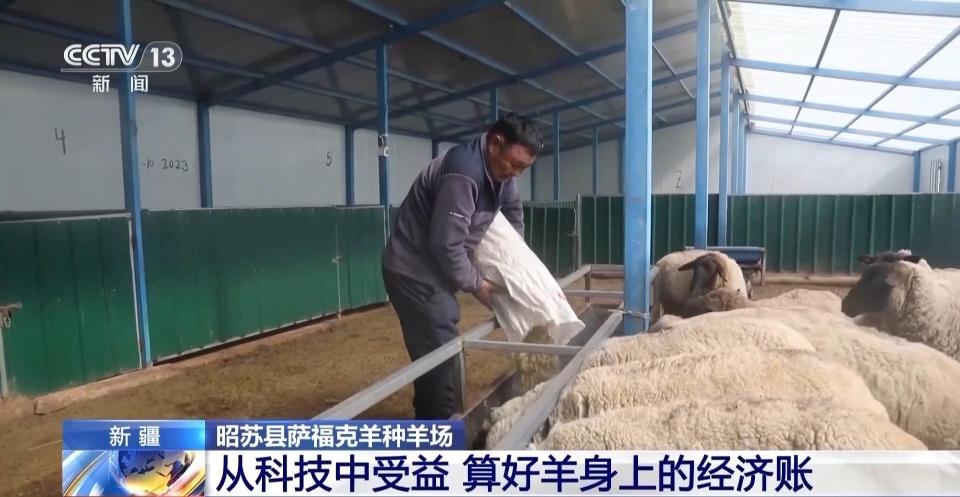在新疆昭苏县萨福克羊种羊场,来自新疆农业大学的畜牧专家正在给牧民算一笔账:一笔关于羊的大尾巴和小尾巴不同的经济账。尾巴的变化和收入有什么关系呢?