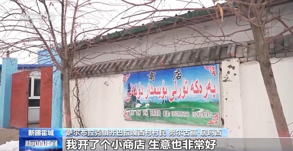 萨尔布拉克镇齐巴拉嘎西村村民 努尔古丽·居玛西:以前在山上,我们的收入依靠牛、羊、马那些。现在我们搬到这里以后,我开了个小商店,生意非常好,我们自己花的零花钱,包括我的化妆品的钱,都是在我这个小商店里面挣的钱。