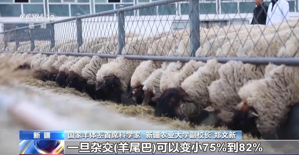 国家羊体系首席科学家 新疆农业大学副校长 郑文新:现在羊尾油可能每公斤6元到10元,但是肉现在每公斤55元到60元。一旦杂交,羊尾巴可以变小75%到82%。吃的草就变成更多的肉了,羔子可以增加200元到300元的收入。