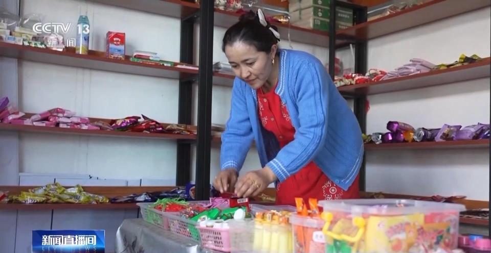除了牧民的住房和生活条件得到了提升,这些年,就业机会也越来越多,不少牧民有了新的职业,吾热阿勒别克的妻子努尔古丽,就在家门口开了一个小商店,生活也多了一份保障。