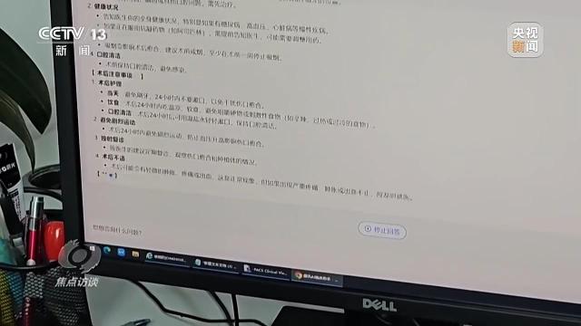 经过简单问诊后,AI仅用8秒钟就给出了辅助诊断建议。因为李华亮有种植牙的需求,对牙科不熟悉的心内科大夫还用“AI问答”查看了种植牙的注意事项。
