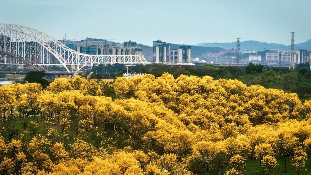金灿灿的风铃木进入观赏旺季
