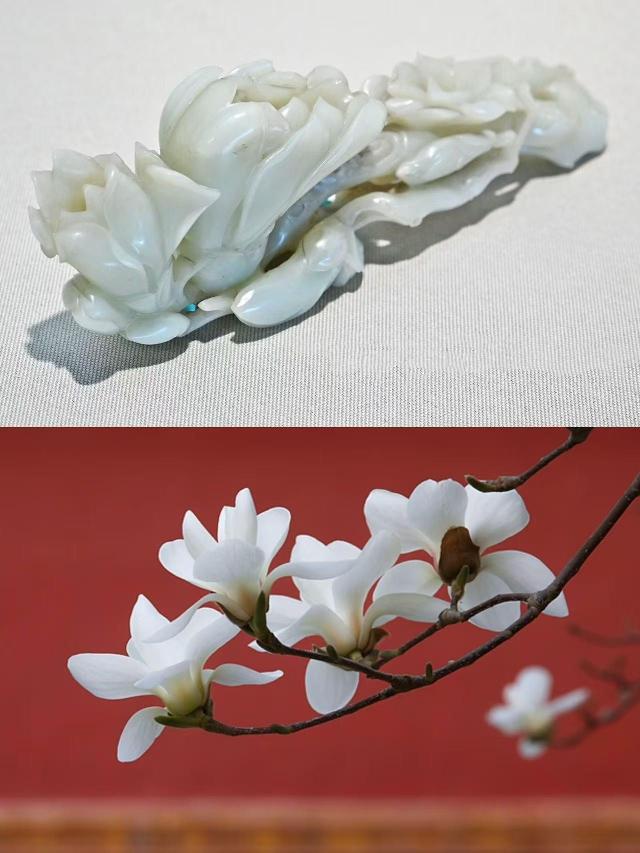 △明陆治、王穀祥《海棠玉兰图》(局部),台北故宫博物院藏。