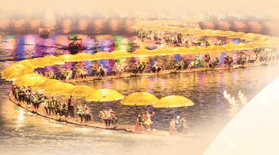 游客在湖北恩施土家族苗族自治州宣恩县贡水河休闲赏夜景。宋 文摄(新华社发)