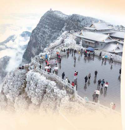 近年来,“特种兵式旅游”在青年群体中流行。图为游客在四川峨眉山金顶远眺银装素裹的群峰与云海。新华社记者 江宏景摄