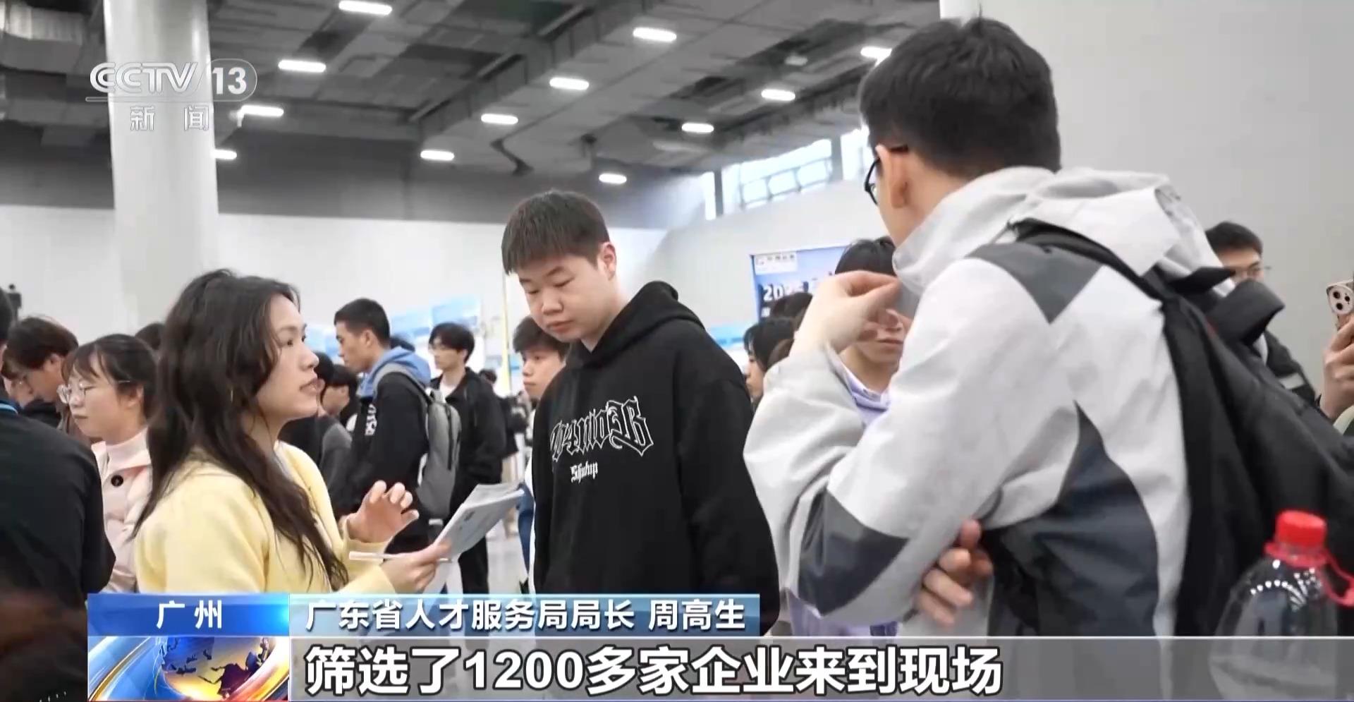 总台央视记者 唐蕾:在广州市琶洲广交会展馆,和往年比,今年春招规模扩大了近3倍,在这里,不仅有一站式的招聘会,还有人工智能与机器人专场项目对接会等多种人才对接活动。