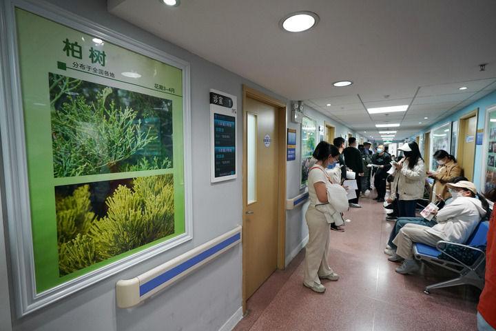 3月21日,患者在首都医科大学附属北京世纪坛医院变态(过敏)反应科候诊。新华社记者 张晨霖 摄