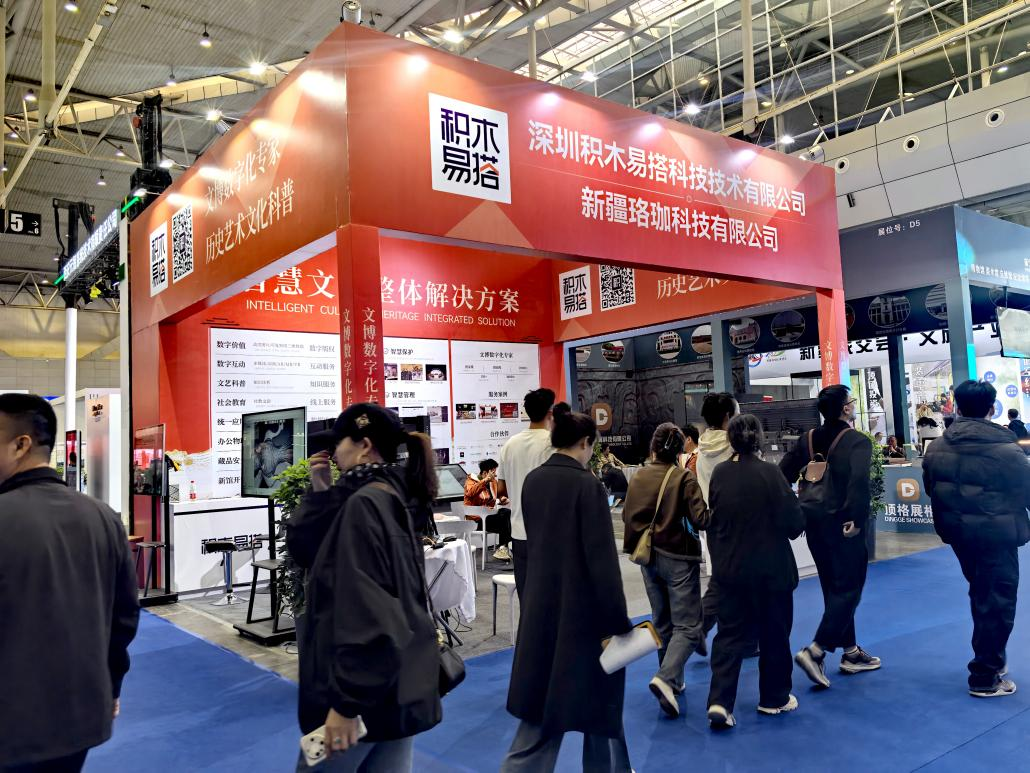 深圳积木易搭科技技术有限公司、新疆珞珈科技有限公司展位前人来人往(薛玲摄)