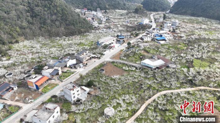 中新网百色3月25日电 近期,广西百色市凌云县2万多亩李树进入开花授粉期,洁白如雪的花朵绵延起伏与青山绿水相映成趣,吸引各地游客纷至沓来。