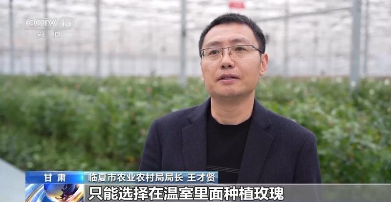 甘肃临夏农业农村局局长 王才贤:玫瑰是一个高产值的作物,我们这个地方的海拔和光照适合玫瑰生长,但是它又缺水干旱,冬季比较寒冷。要解决这个问题,只能选择在温室里面种植玫瑰。