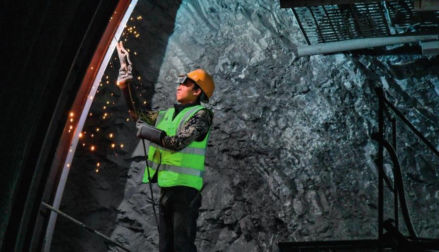 中铁二十局的工人在西渝高铁康渝段明灯山隧道内施工(2025 年 1 月 15 日摄) 王曦摄 / 《瞭望》