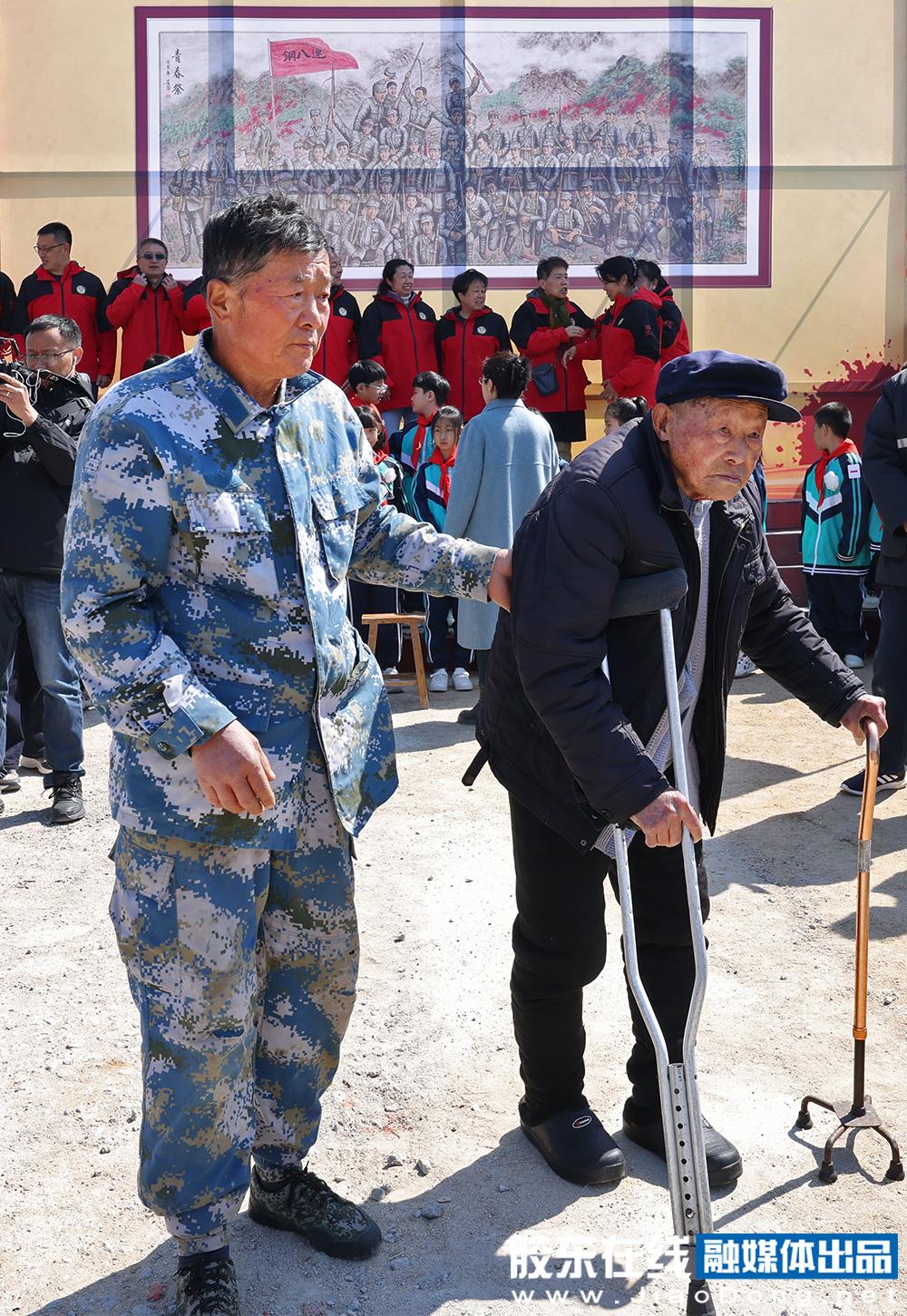 在拍摄“全家福”环节,村里唯一的丰仪店战斗亲历者,93岁的慕香全老人,在村民帮助下也来到现场,虽然身体不便,但对于祭奠抗日无名先烈,老人说什么也要来。众人搀扶着他颤颤巍巍坐在全村老少、部队官兵中间,跟抗日无名先烈合影,老人腰板挺得很直,眼里满是欣慰。