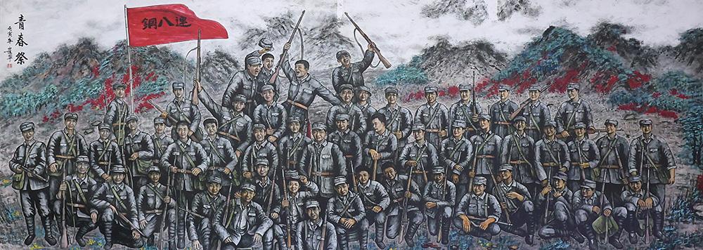 龙口市丰仪店村党支部书记慕泉欣介绍,2023年,工艺美术大师崔宁,被这段战斗故事和红色情怀感染,创作出《青春祭》,全村父老乡亲首次在龙口市烈士陵园与53位抗日无名先烈画像拍摄“全家福”。
