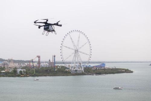 3月27日,小鹏汇天“陆地航母”湖南首飞仪式在湖南省常德市柳叶湖旅游度假区举行,模拟了跨湖面飞行的应用场景。
