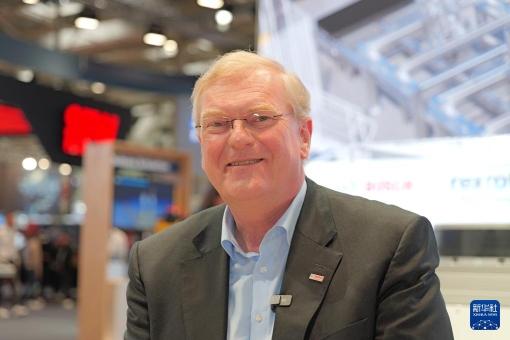 3月31日,德国博世集团董事会主席斯特凡·哈通在德国汉诺威工业博览会上接受新华社记者专访。新华社记者 邰思聪 摄