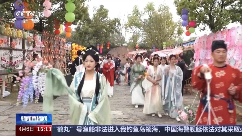 清明假期,河南漯河临颍县小商桥景区推出沉浸式“宋街集市”,伴随着“开市喽”的吆喝声,身着华服的花神带领游客穿越宋街,糖画、草编等传统工艺产品,和丰富精彩的沉浸式实景演出,让众多游客沉浸式体验宋代生活美学。