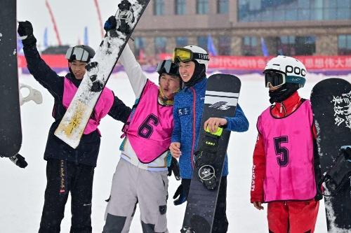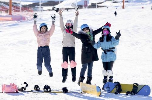 这是几名滑雪爱好者在新疆丝绸之路山地度假区合影留念(2025年1月27日摄)。新华社记者 王菲 摄