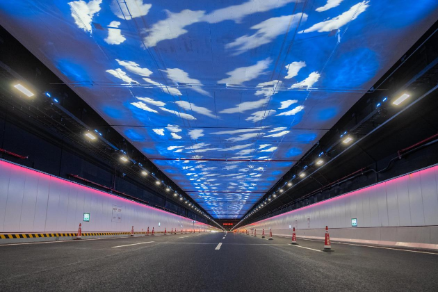 在横琴粤澳深度合作区建设的持续推进下,近年来,横琴多条海底隧道相继开工建设并逐步落成,十字门隧道就是横琴岛对外连接的三条海底隧道之一,也是距离珠海主城区、横琴核心区最近的通道。该隧道全长2.7公里,是中国国内最大断面跨海域盾构隧道,2023年7月26日通车以后,从横琴金融岛至珠海湾仔区域三分钟可达,极大缓解横琴大桥的交通压力,提升横琴粤澳深度合作区对外通行能力。图为十字门隧道。