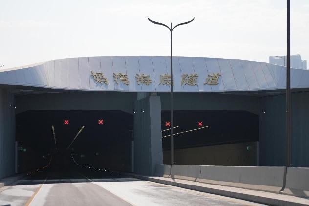 妈湾跨海通道是深圳首条海底隧道,连接深圳的前海和大铲湾港区,全长约8.05千米,最大开挖直径15.5m,是目前国内海底最大直径盾构隧道。自今年1月20日通车以后,该通道成为深圳西部重要疏港通道,可以实现前海片区的客货分离和过境分离,在提升周边港口货运效率的同时,减少货运对城市交通和环境的干扰,推动前海区域交通优化与城市功能整合。图为妈湾跨海通道。