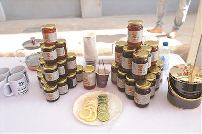 首批坦桑尼亚蜂蜜输华启运仪式2024年12月底在达累斯萨拉姆举行。图为启运仪式上展示的蜂蜜产品。东非商贸物流中心供图