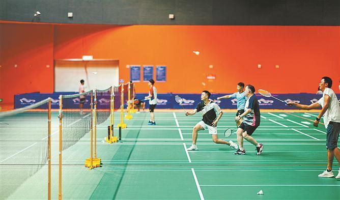 周末在厦门奥体中心羽毛球馆运动的市民。