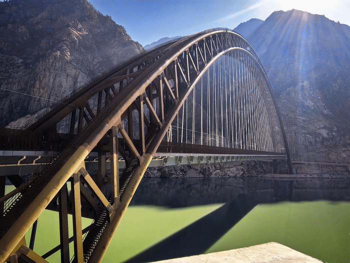 在山南段,列车会穿过藏木特大桥,这是目前世界海拔最高、跨度最大的铁路钢管混凝土拱桥,桥下江水如绸缎般在峡谷中流淌,两岸峭壁巍峨耸立。