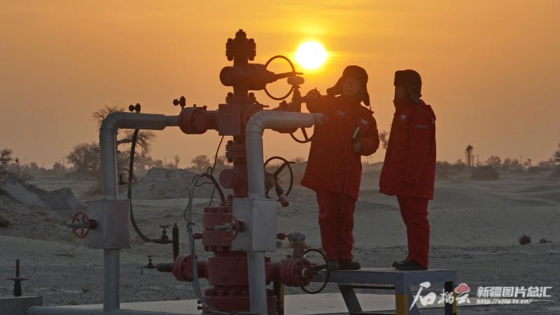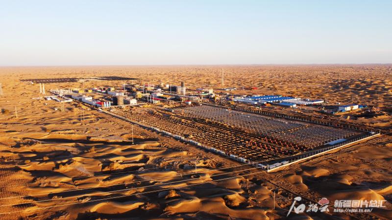落日余晖下的富满油田富源联合站。塔里木油田供图