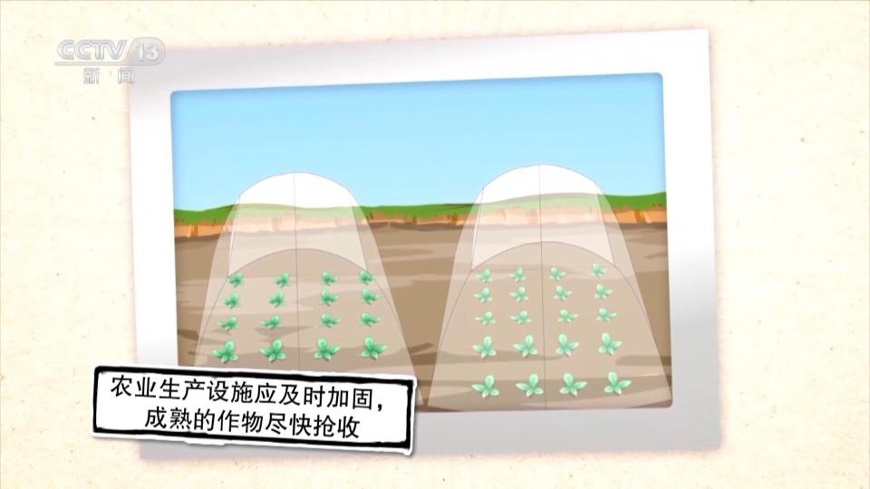 农业生产设施应及时加固,成熟的作物尽快抢收。