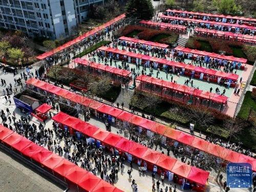 ↑ 这是4月11日在山东青岛科技大学拍摄的2025年春季综合类大型双选会招聘活动现场(无人机照片)。新华社发(王海滨摄)