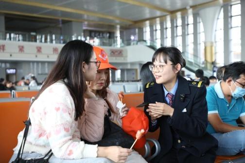 越南导游黄文进正带着一支由11名越南游客组成的旅行团在此候车,他对身旁的游客们说:“动车非常准时,乘车手续便捷,提前40分钟到车站就可以了。”