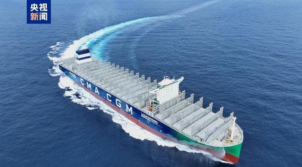 昨天交付的全球最大双燃料动力集装箱船一次可承载22万吨货物,24000个左右的集装箱堆叠高度相当于25层楼,被称为海上“超级带货王”。同时,这型船还采用了绿色燃料——液化天然气作为动力,可为船舶提供单个航次近2万海里的超远续航。