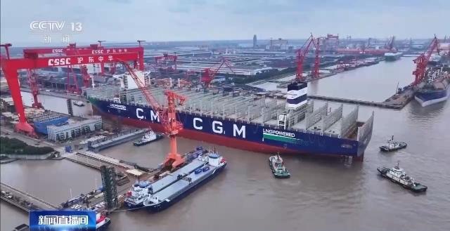专家告诉记者,中国在集装箱船建造领域接连刷新纪录——从21000箱到23000箱,再到昨天交付的24000箱,船越造越大的同时,建造周期也越来越短,这是中国造船能力的体现。