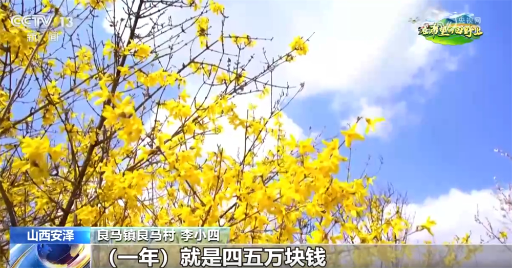 央视网消息:位于山西省安泽县的150万亩野生连翘近日迎来盛花期,当地农户们进入采摘连翘叶的春忙时节。