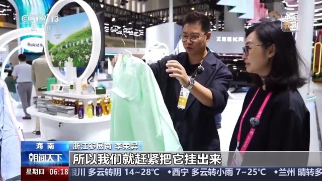 浙江参展商 李荣昇:人流量激增,所以我们就赶紧把它挂出来,现在都还没有烫。我们衣架都已经不够用了。我们赶紧从酒店里边又借了几个过来。