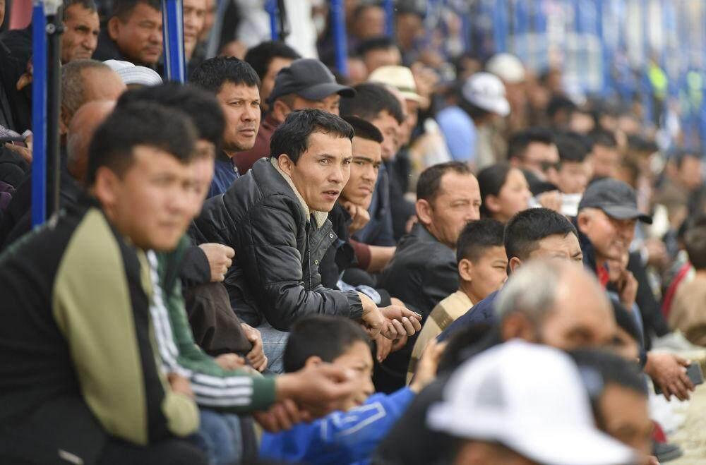 4月13日,人们在新疆于田县先拜巴扎镇农牧民运动场观看叼羊比赛。新华社记者 胡虎虎 摄