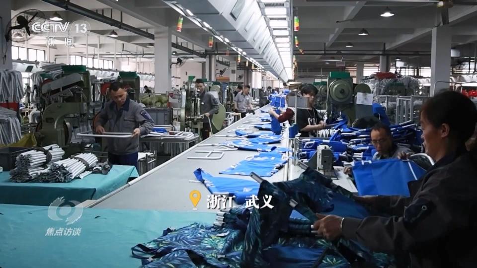 浙江武义县是全国旅游休闲用品的重要生产基地,户外用品产量占全国的40%以上。记者在企业生产车间看到,30多条生产线开足马力,加班加点赶制户外折叠椅、折叠桌等订单产品,月订单销量达到130万件左右。