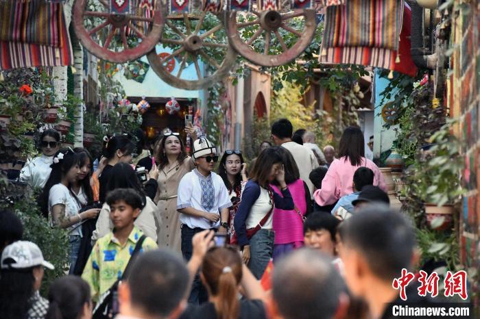 2023年10月1日,喀什古城景区内游人如织。(资料图)中新社记者 孙亭文 摄