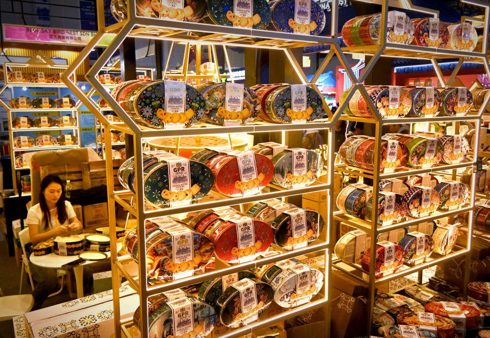 GPR展台位于第五届中国国际消费品博览会马来西亚中国总商会展区“C位”。烫金浮雕的饼干盒在灯光下流转着光泽,美轮美奂如微型宫殿。