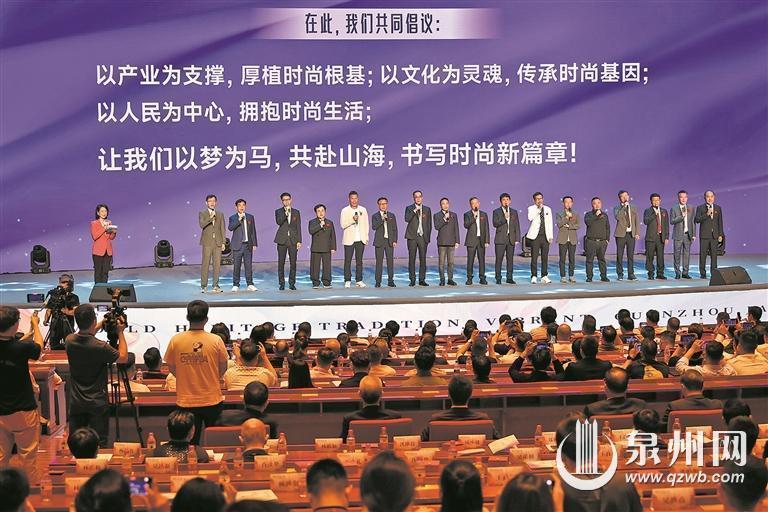 向海而兴行大道,深耕故土创未来。泉州时尚周不仅是一场时尚产业的盛宴,更是一场推动全民参与、凝聚全球泉州力量的“向心之旅”。作为打造“世遗泉州 时尚之都”的有力支撑——泉州时尚产业联盟在启幕仪式上向全球发布《让时尚成为全民共识与全域主张》倡议书。产业联盟执行主席、七匹狼企业董事长周少雄,与安踏赖世贤、特步丁水波、九牧王林聪颖、斯凯奇杜大伟、利郎王良星、柒牌洪肇设、劲霸洪伯明、中乔体育丁国雄、鸿星尔克吴荣照、匹克许志华、八马王文礼、海天王启明、华祥苑肖文华、爱登堡田启明、当代艺术家吴达新及福诚中国林宏楠等人共同发声:将以产业为支撑,厚植时尚根基;以文化为灵魂,传承时尚基因;以人民为中心,拥抱时尚生活;以梦为马,共赴山海,书写时尚新篇章!