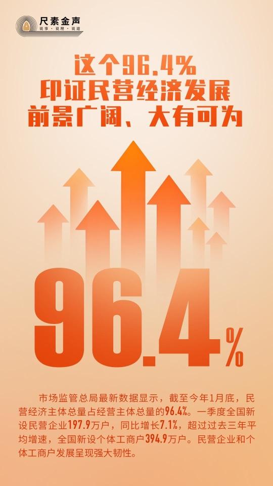 改革开放以来,特别是新时代以来,千千万万个像章华妹一样的经营者,不断发展壮大。市场监管总局最新数据显示,截至今年1月底,民营经济主体总量占经营主体总量的96.4%。一季度全国新设民营企业197.9万户,同比增长7.1%,超过过去三年平均增速,全国新设个体工商户394.9万户。民营企业和个体工商户发展呈现强大韧性。