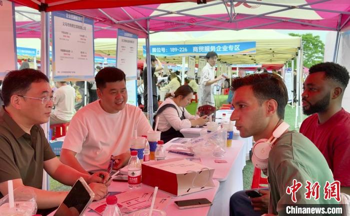 留学生维克托(Victor)打算直接当老板。“我不找工作,我来这里找合作伙伴。”他说,得知这里有较为集中的商贸企业招聘活动后,他便打算来“一站式”了解义乌的外贸发展,寻求商业机遇。