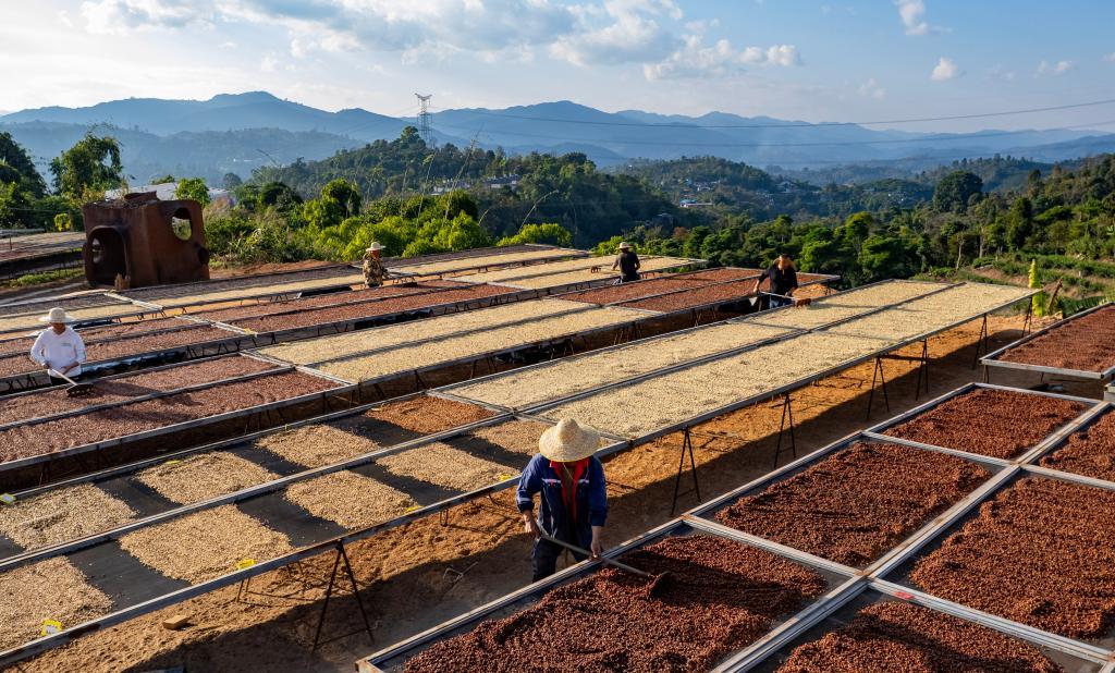 云南小粒咖啡“颗粒饱满、香气浓郁、口感醇厚”的独特风味,被当地群众昵称为“金豆子”。据云南省农业农村厅统计,截至2024年底,全省咖啡种植面积超过120万亩,年产量突破14万吨,均占全国98%以上。